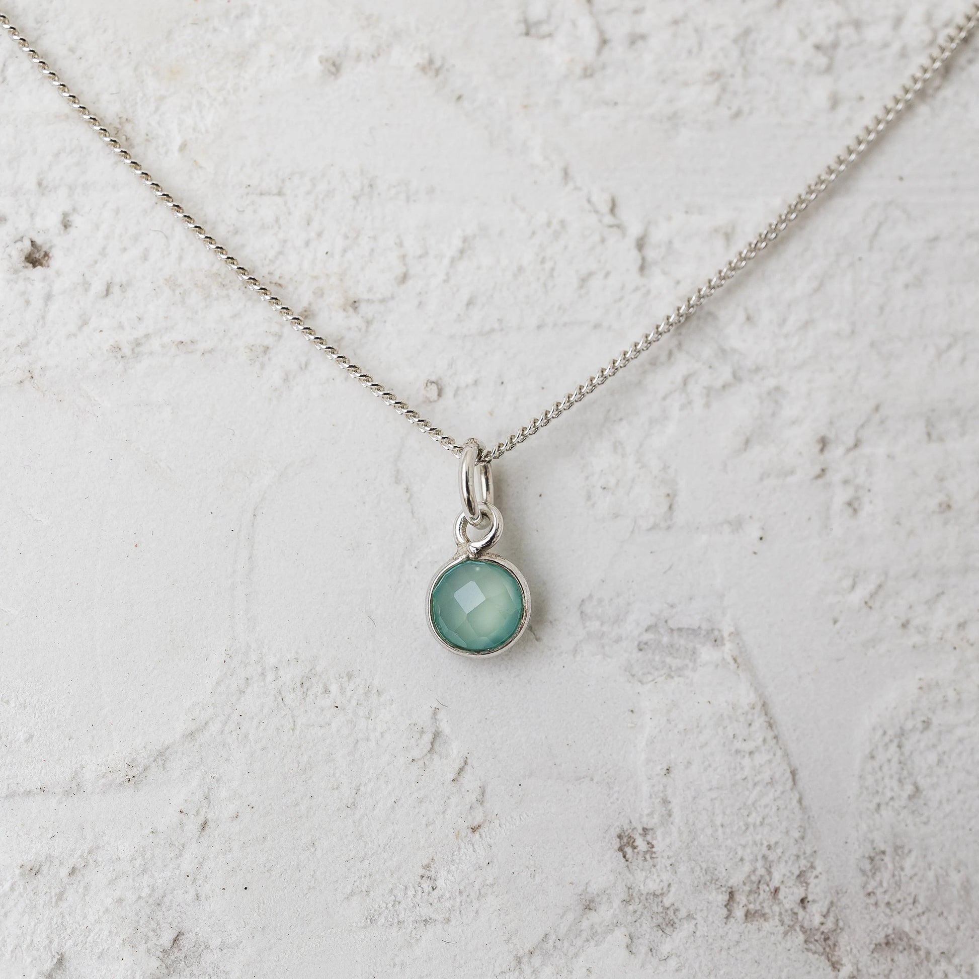 Hold the memory of your baby close with this necklace. Featuring a genuine blue chalcedony crystal, each pendant displays unique markings, making every piece one of a kind—just like your little one.