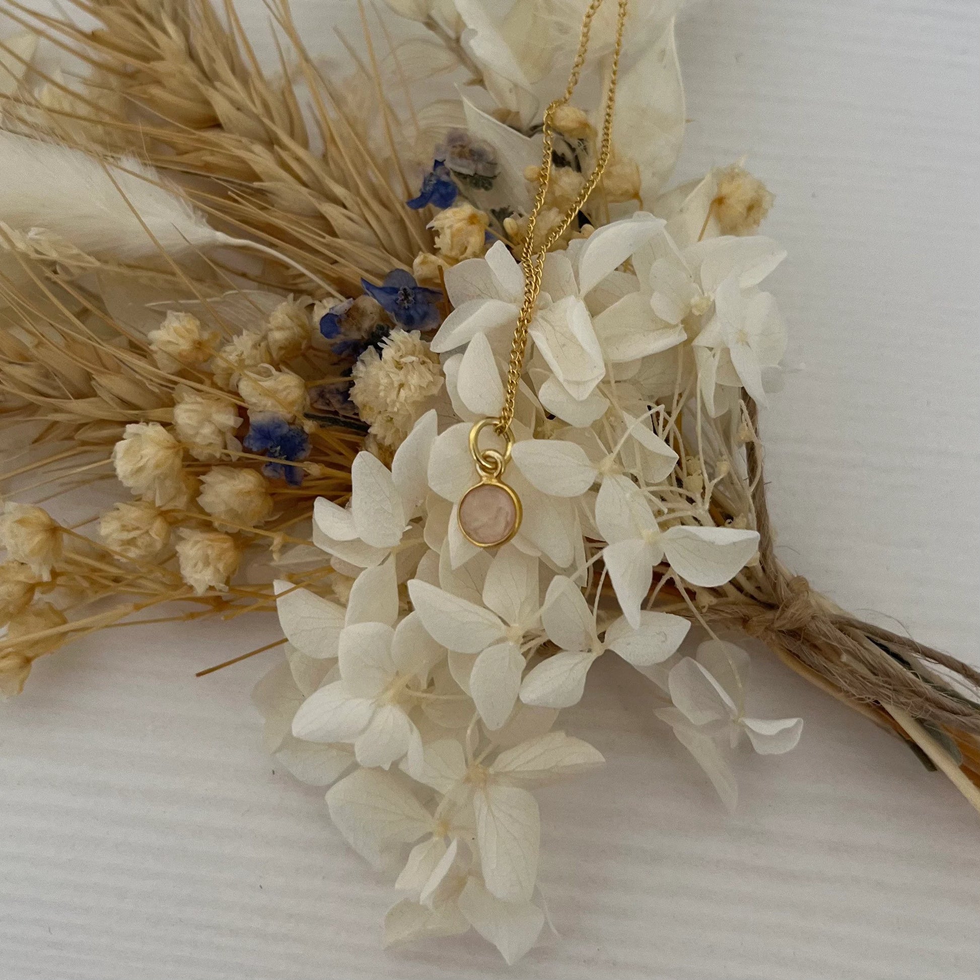 Hold the memory of your baby close with this necklace. Featuring a genuine rose quartz crystal, each pendant displays unique markings, making every piece one of a kind—just like your little one.